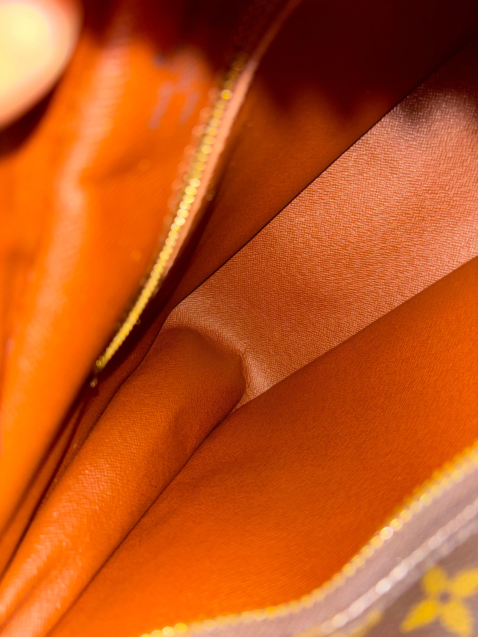 Canvas is thick & vibrant, no cracks or tears.Gorgeous light honey patina leather. Strap is strong, no cracks, some light water marks here and there. Pipings look good. Side chaps are intact.Some hardwares has scratches. Top zipper closure works fine. Main interior is clean. Side pocket interior has wrinkling/ bubbling but no peeling. No foul smell