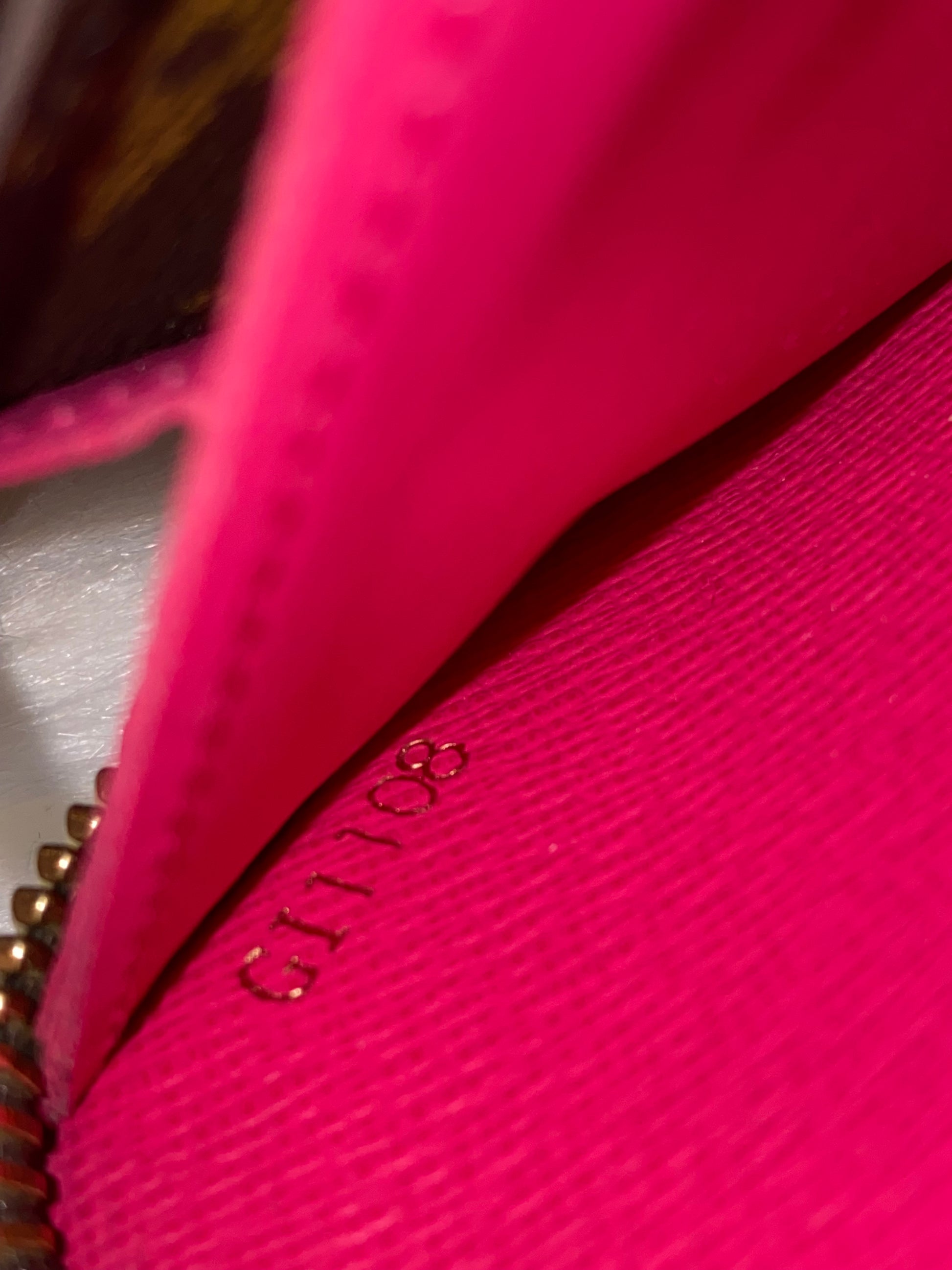 Some inevitable scratches on gold plated hardwares; all zippers work great. All interior compartments are clean. Coin compartment has light signs of use. No foul odor.
