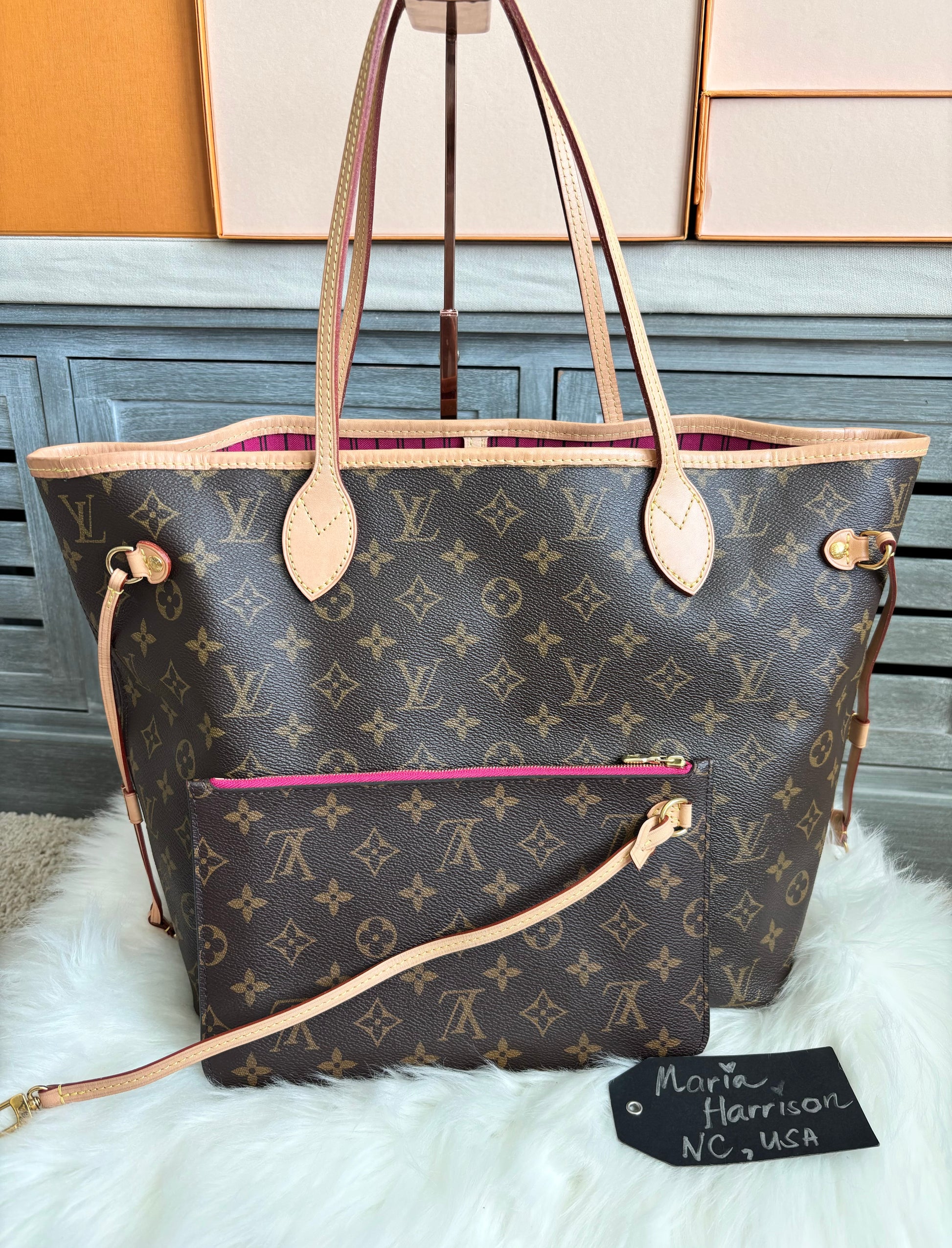 Louis Vuitton Neverfull MM With Pouch - Pivoine/ Pink Interior