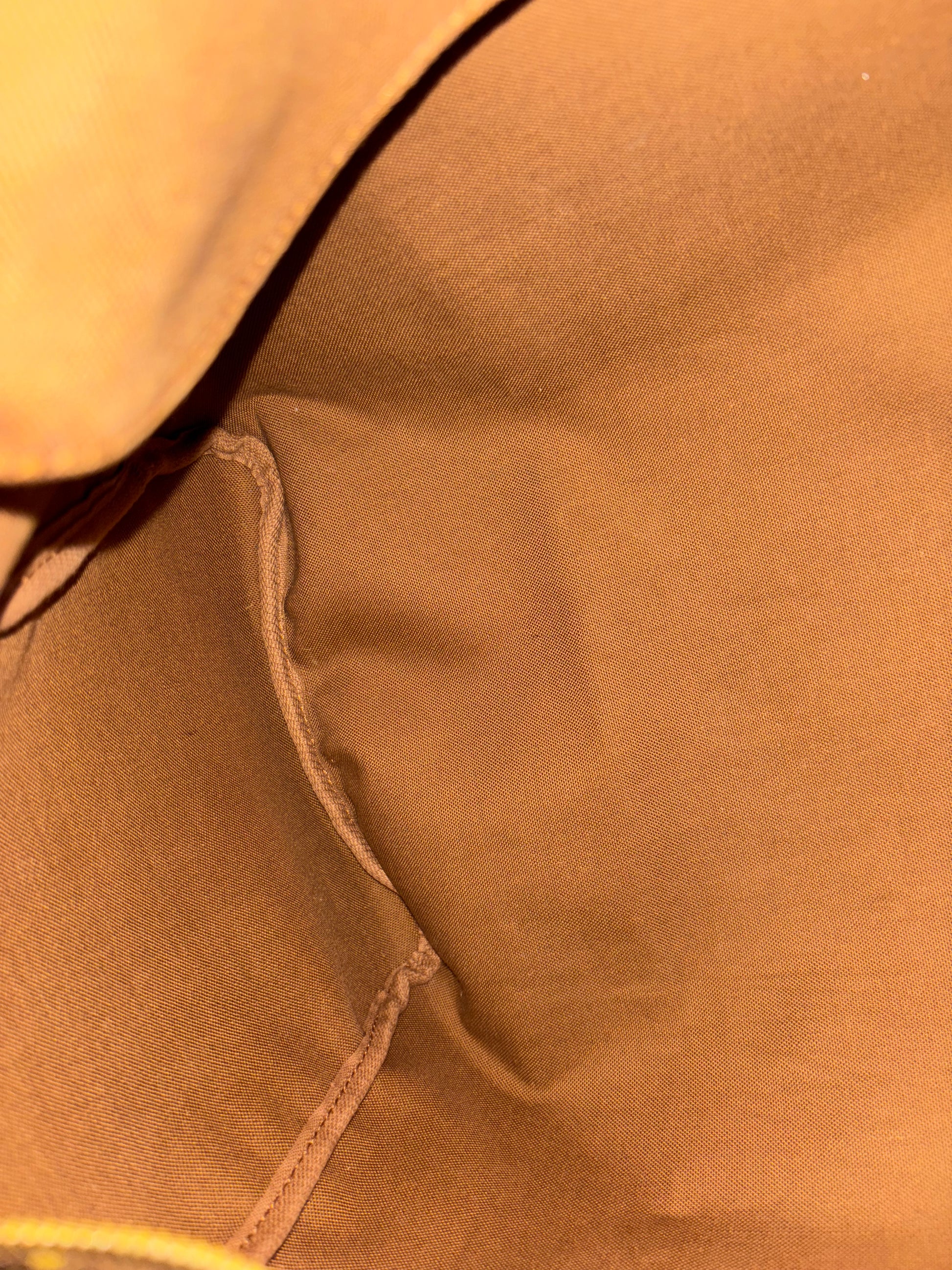 Vachetta leather turned nice honey patina; some stains here and there, all leather tabs are intact, handles are sturdy; no cracks, some water marks & light rubs on corner pipings. Gold plated hardwares has some inevitable oxidation & scratches; zipper closure runs smoothlyMain interior & pocket are clean.